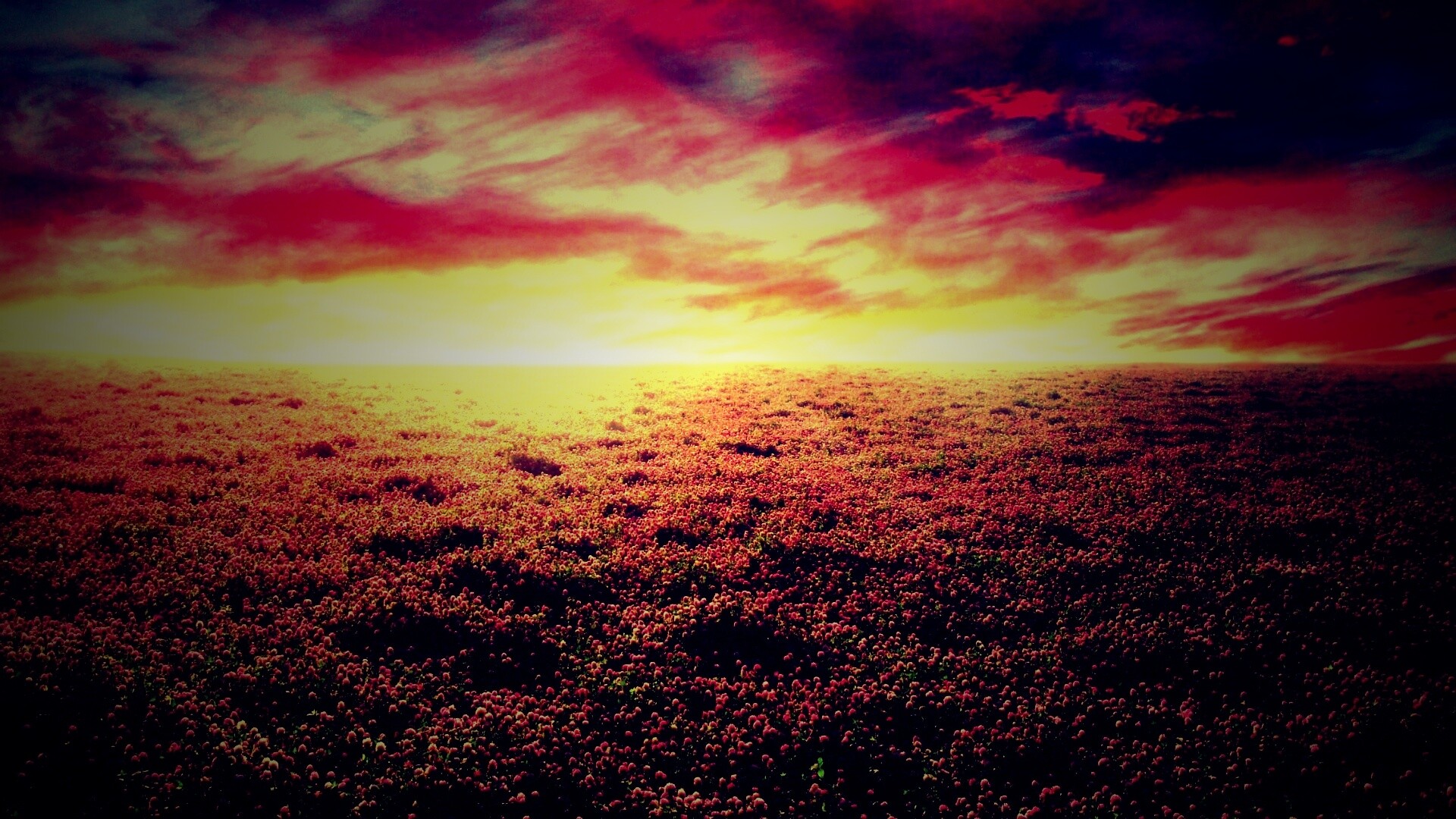 «Закатное небо над цветочным полем»