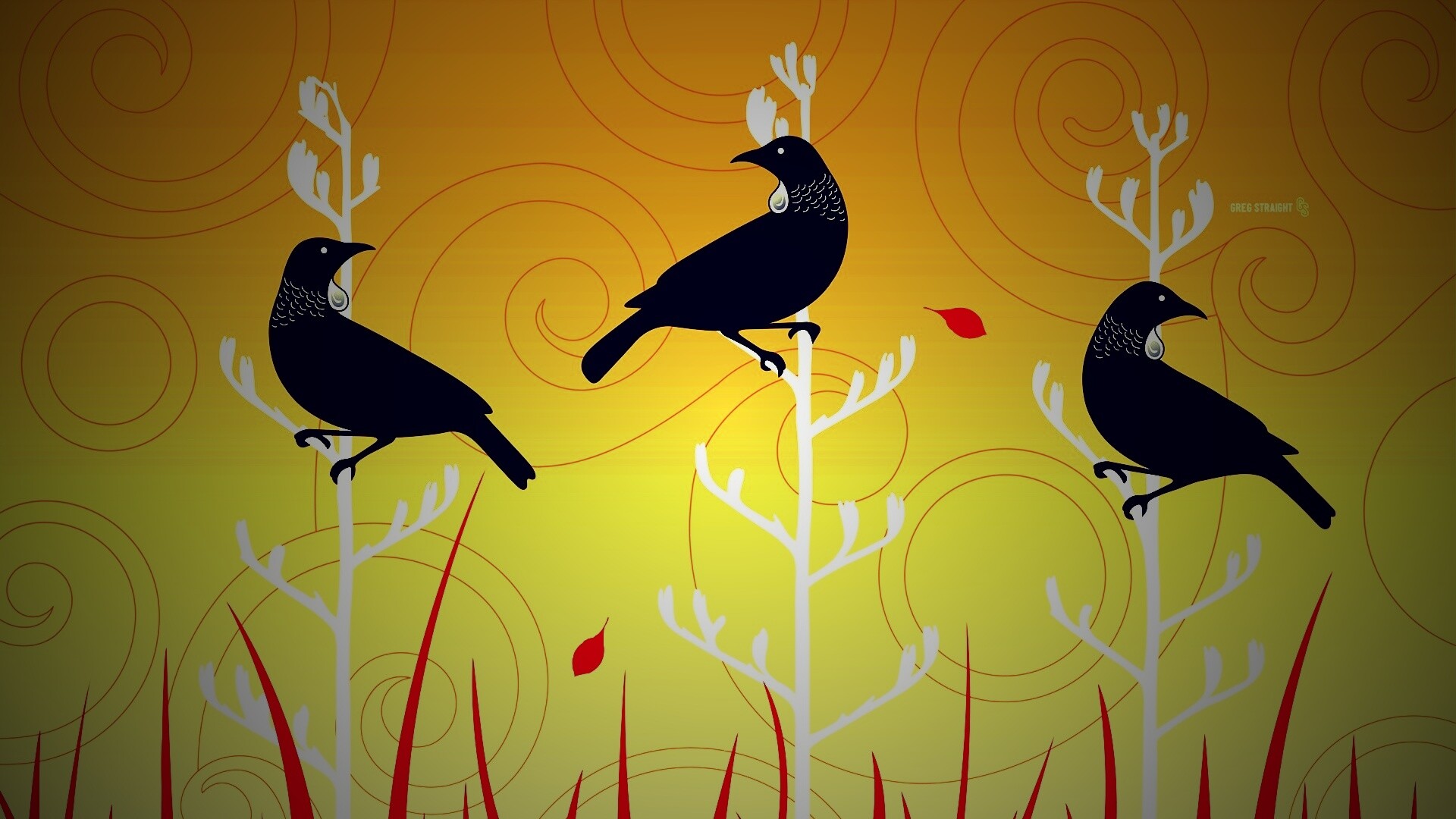 «Векторные стилизованные птицы на ветках дерева»