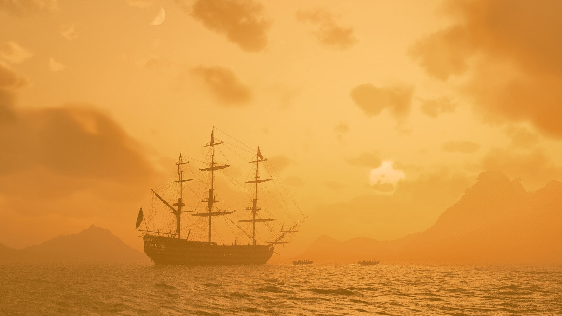 «Трехпалубный парусный корабль на закате»