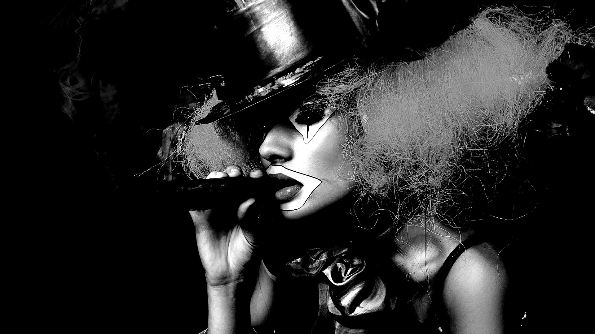«Девушка клоун курит сигару»
