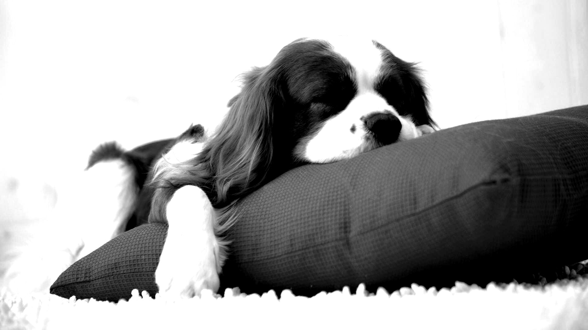 «Спящий щенок на красной подушке»