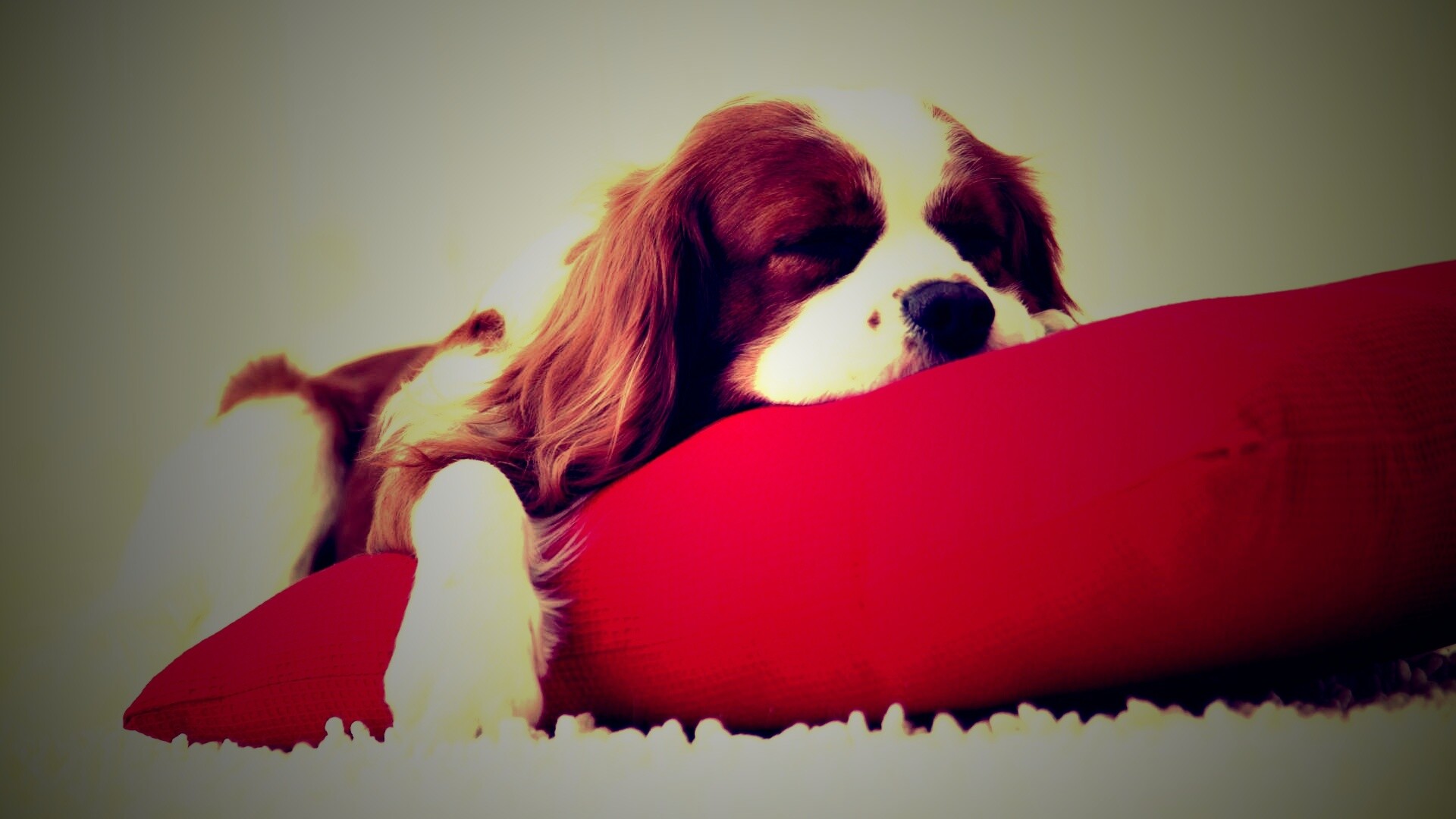 «Спящий щенок на красной подушке»
