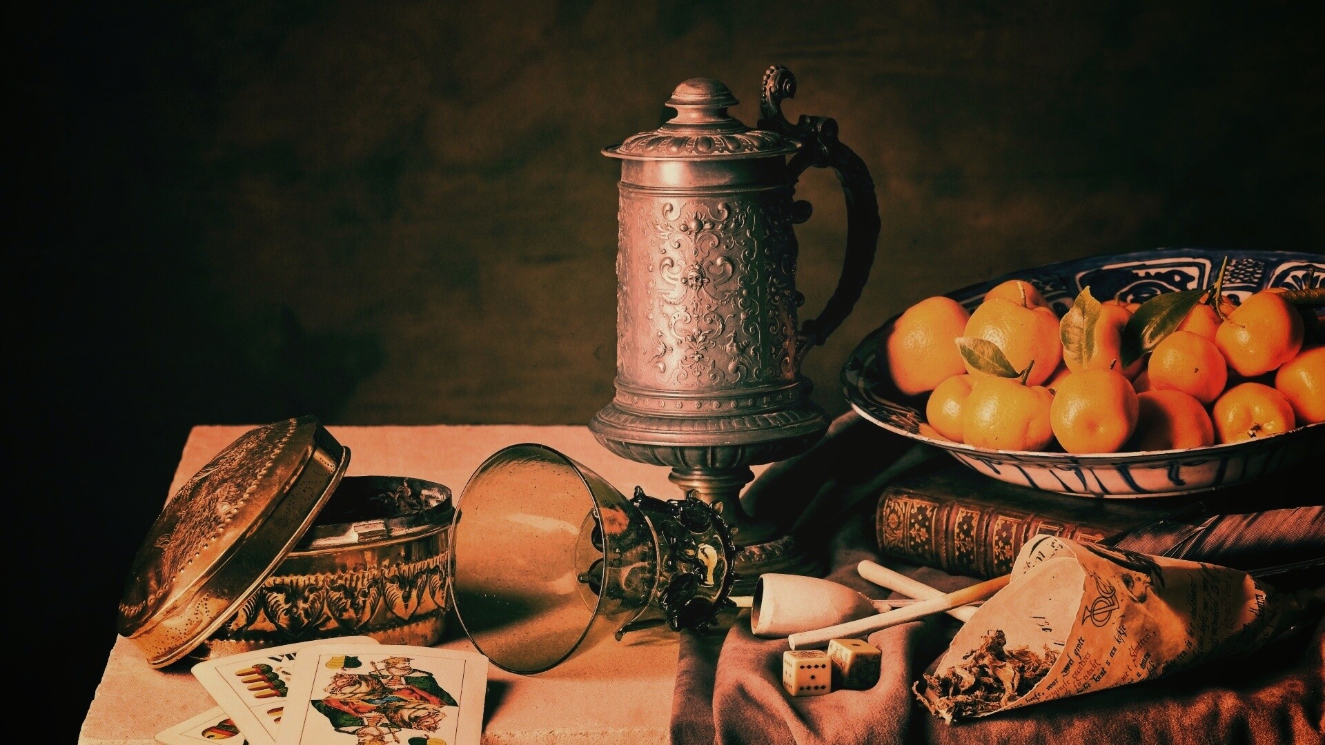 Обои для рабочего стола «Подготовка к натюрморту» 1920х1080 с фильтром earlybird (оригинал 4132х2755)