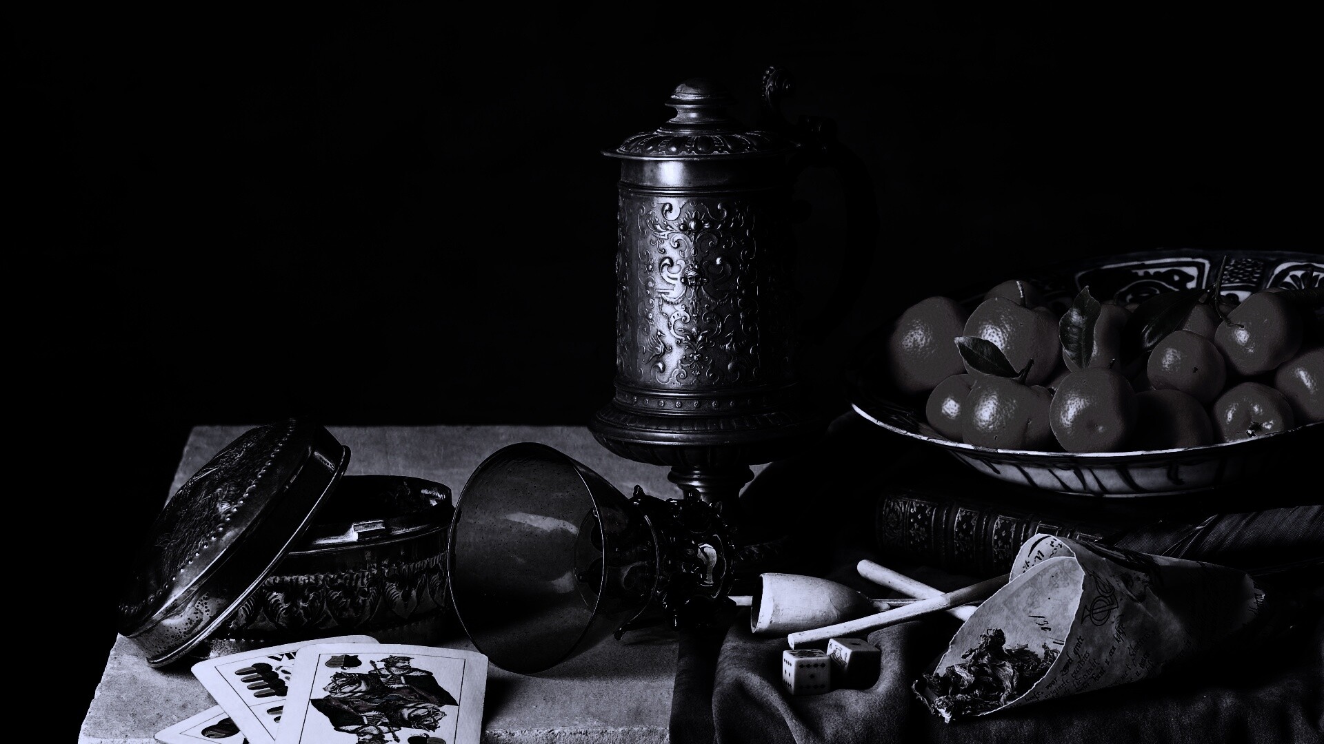 Обои для рабочего стола «Подготовка к натюрморту» 1920х1080 с фильтром gotham (оригинал 4132х2755)