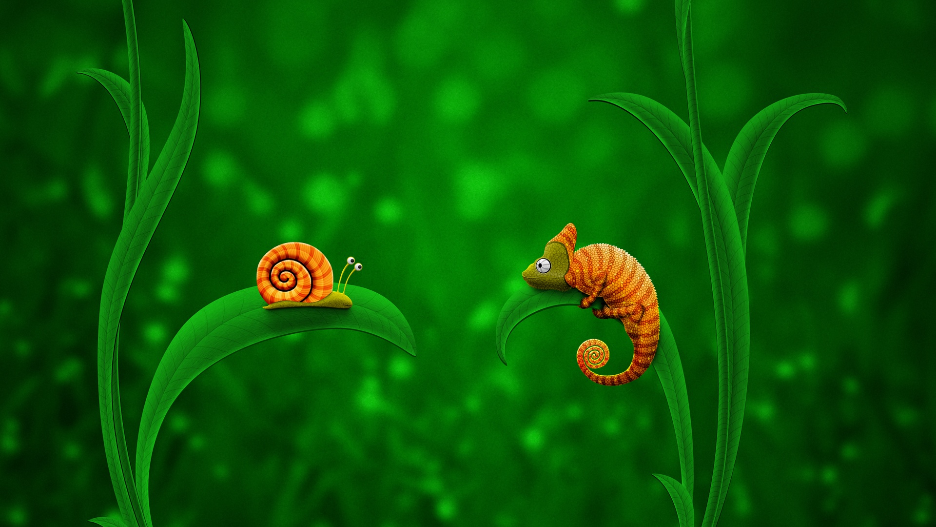 Обои для рабочего стола «Хамелеон замаскированный под улитку» 1920х1080 (оригинал 2560х1600)