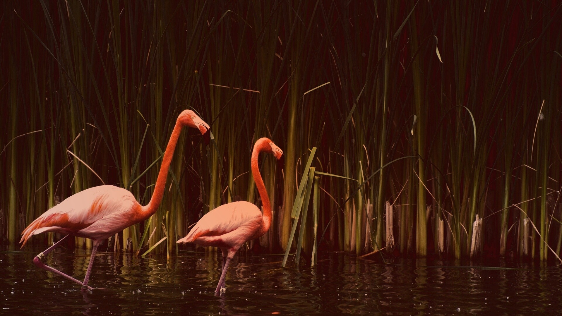 «Красивые розовые фламинго на озере»