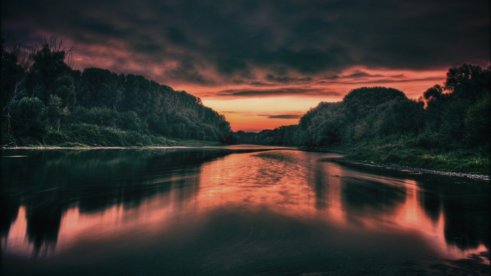 «Багровый закат и водная гладь»