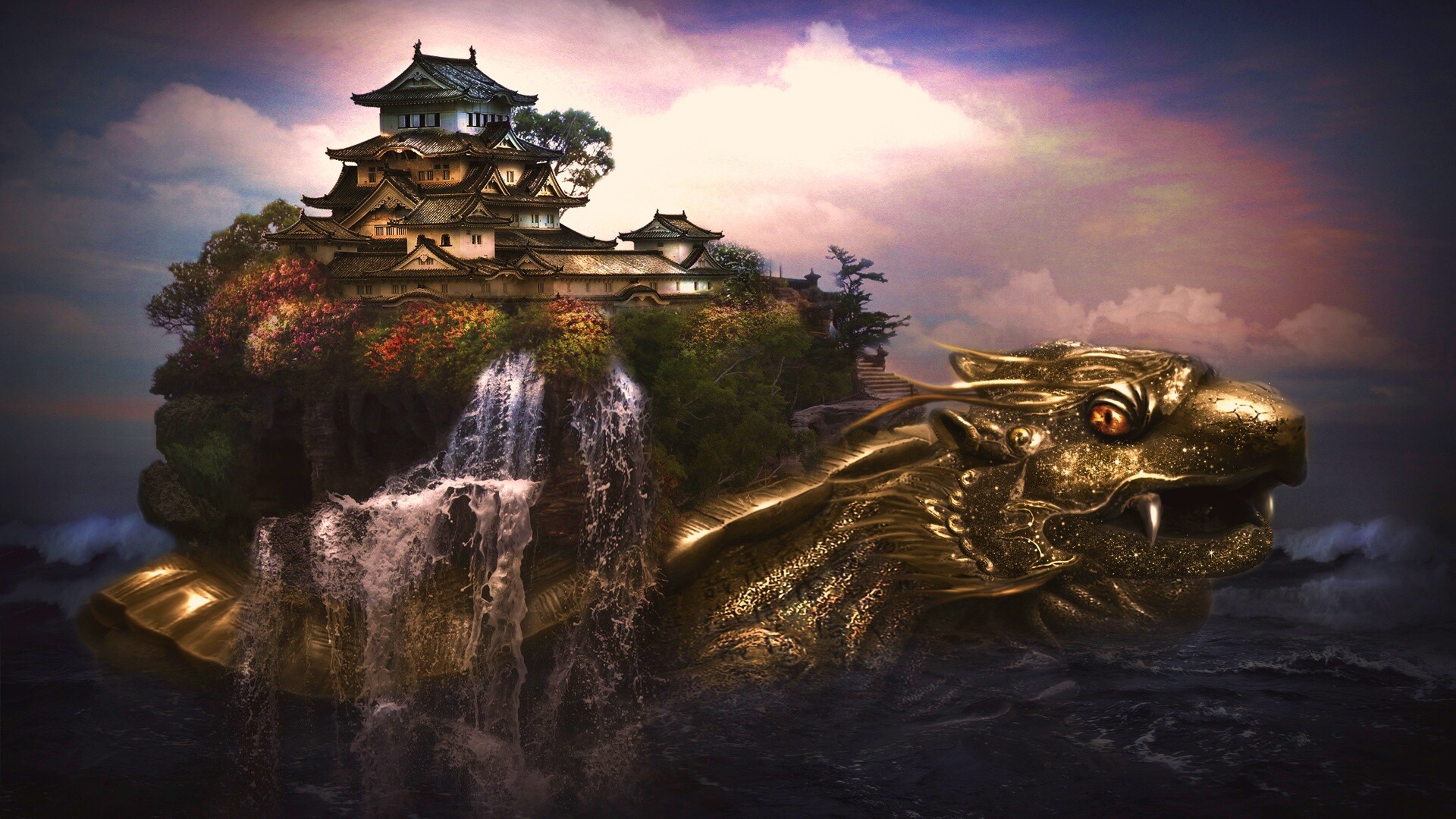 «Золотая черепаха и китайская пагода в океане»