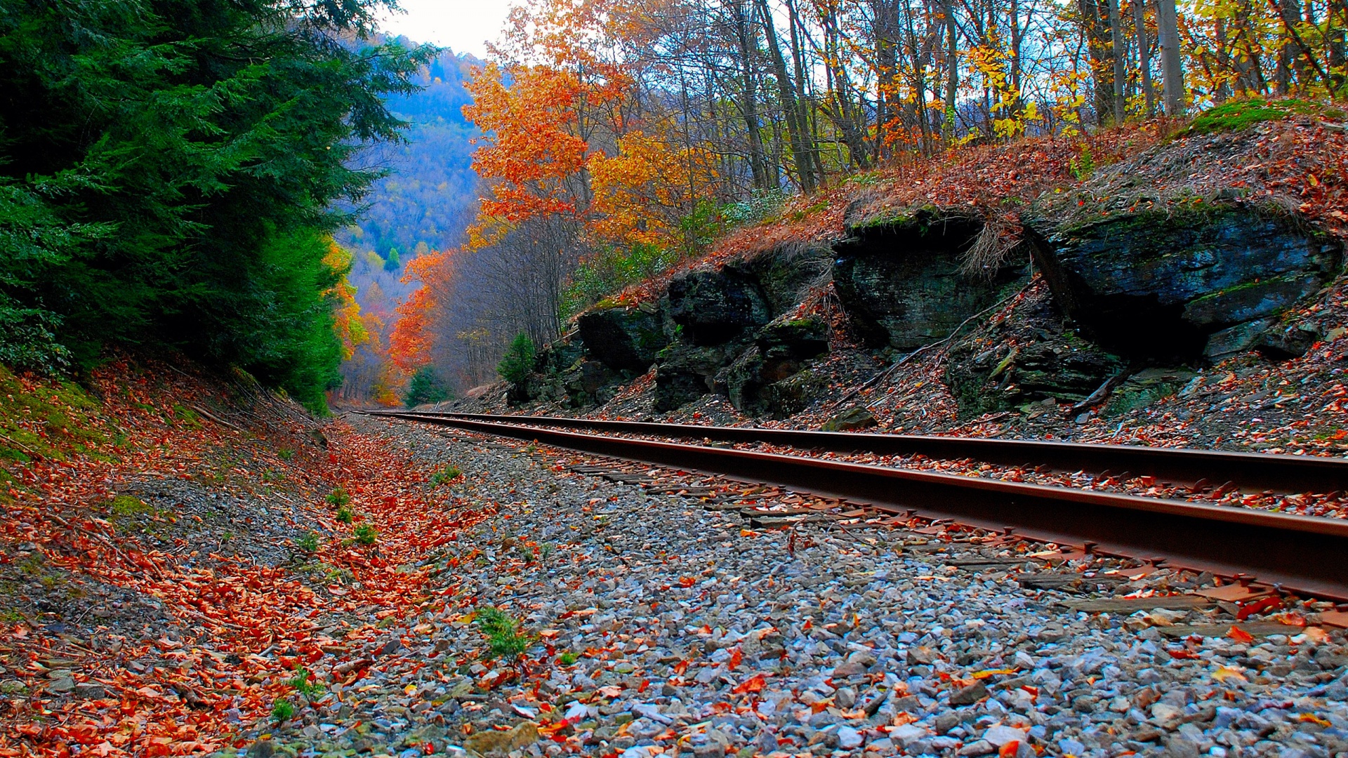 «Железная дорога в скалистой местности»