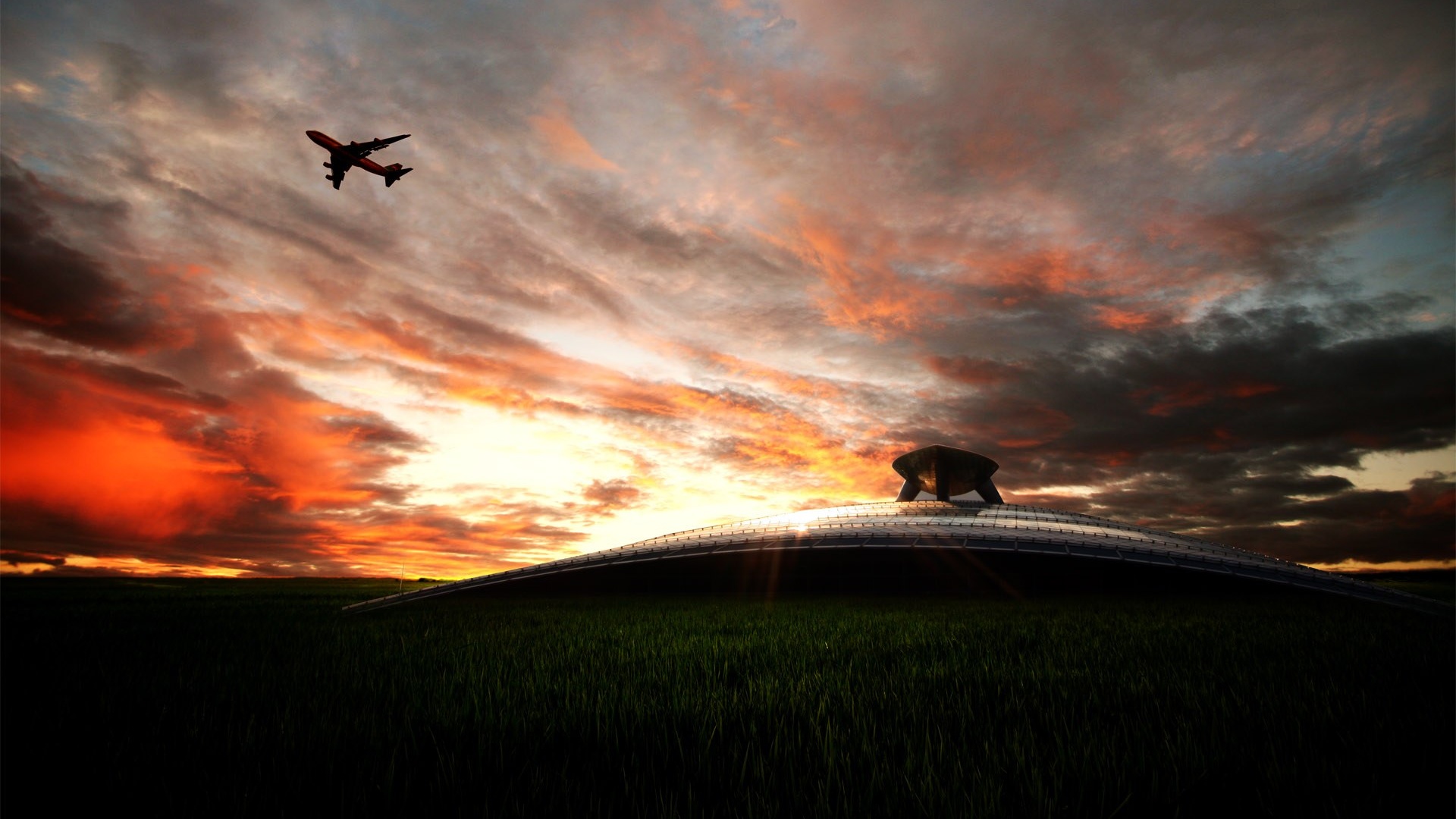 «Самолет в закатном небе»