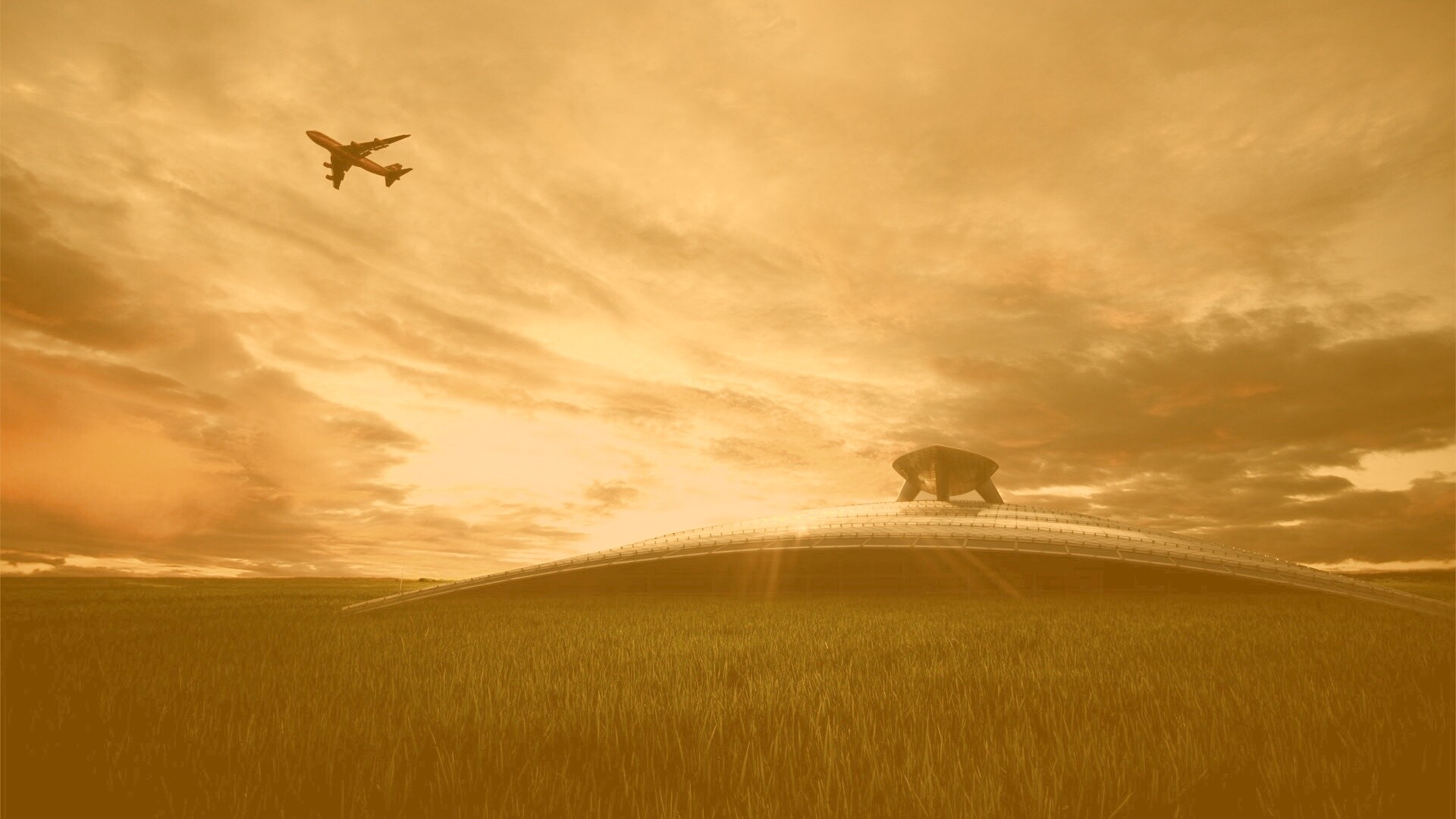 «Самолет в закатном небе»