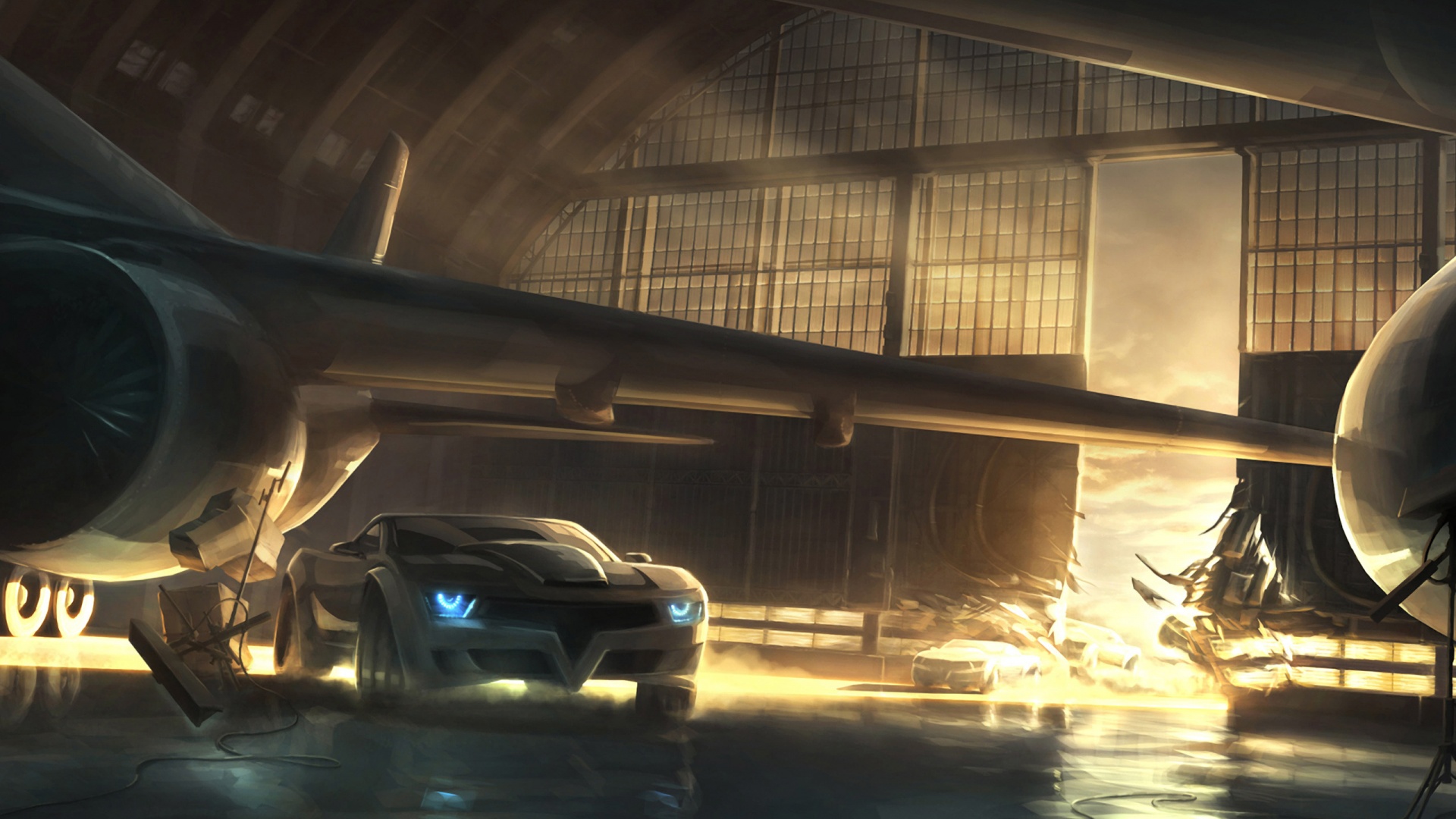 «Машины въезжают в ангар»