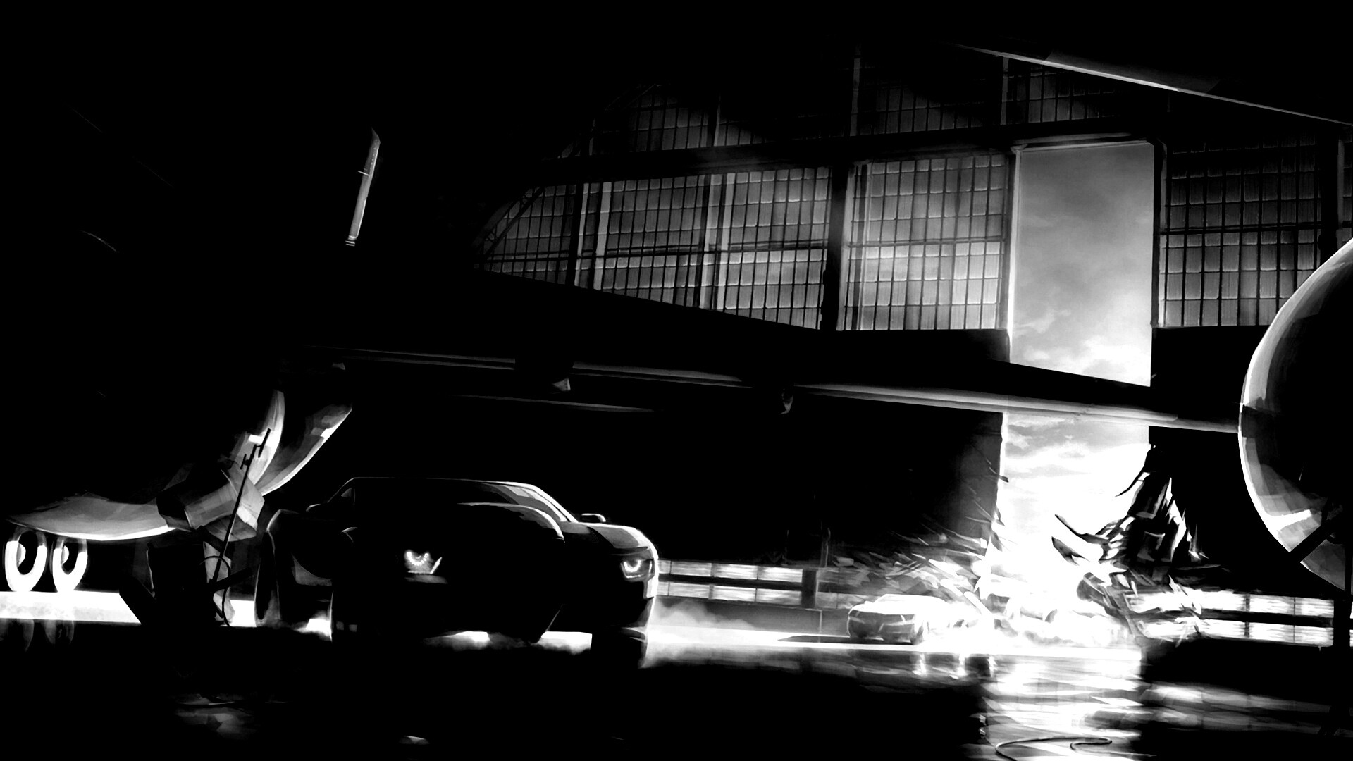 «Машины въезжают в ангар»