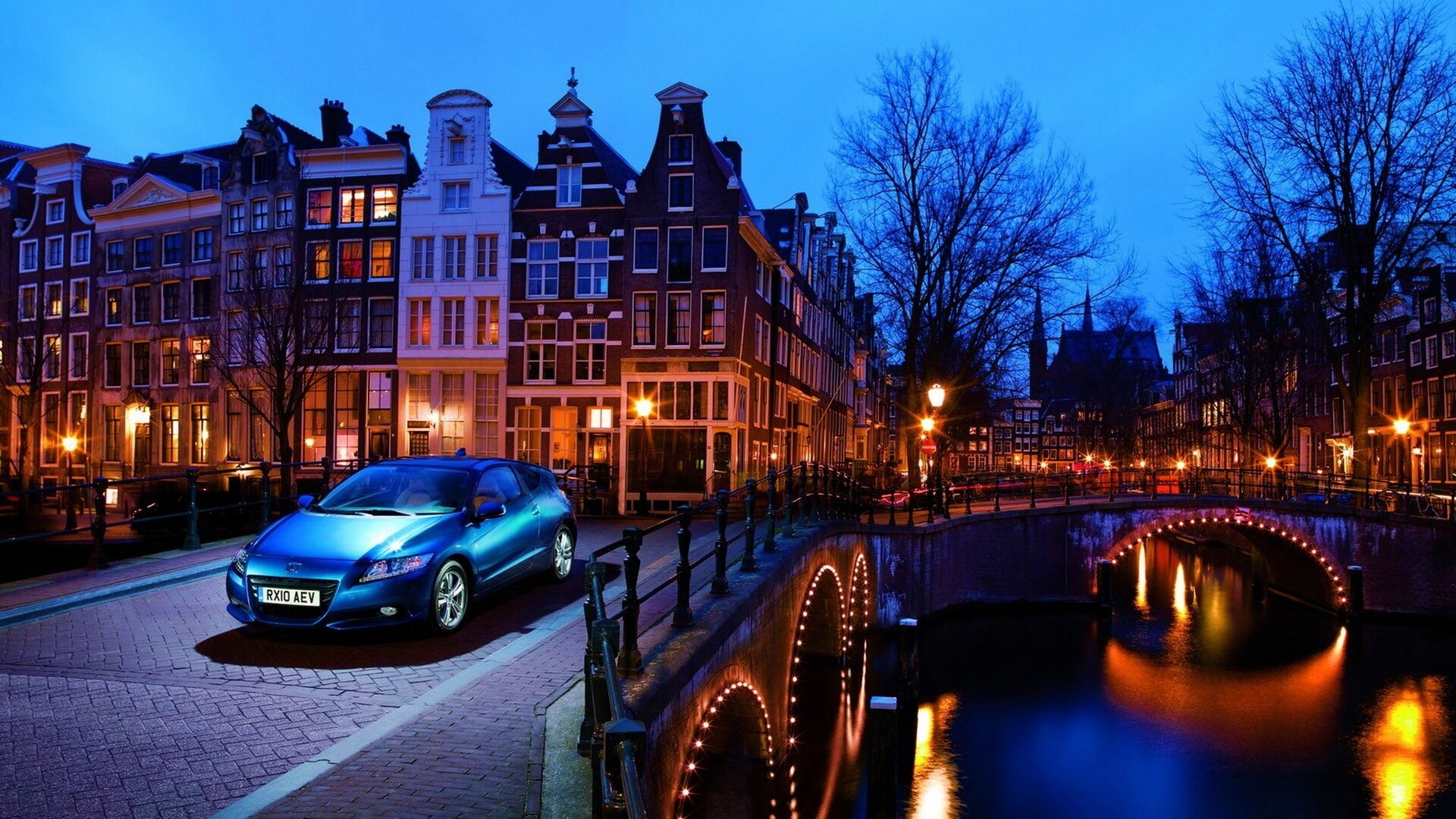 «Автомобиль на мосту в свете фонаря»