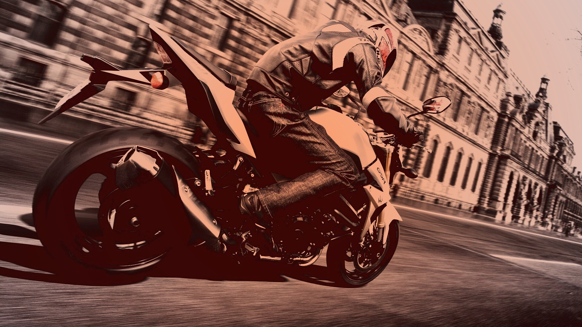 «Мотоциклист мчится по городу»