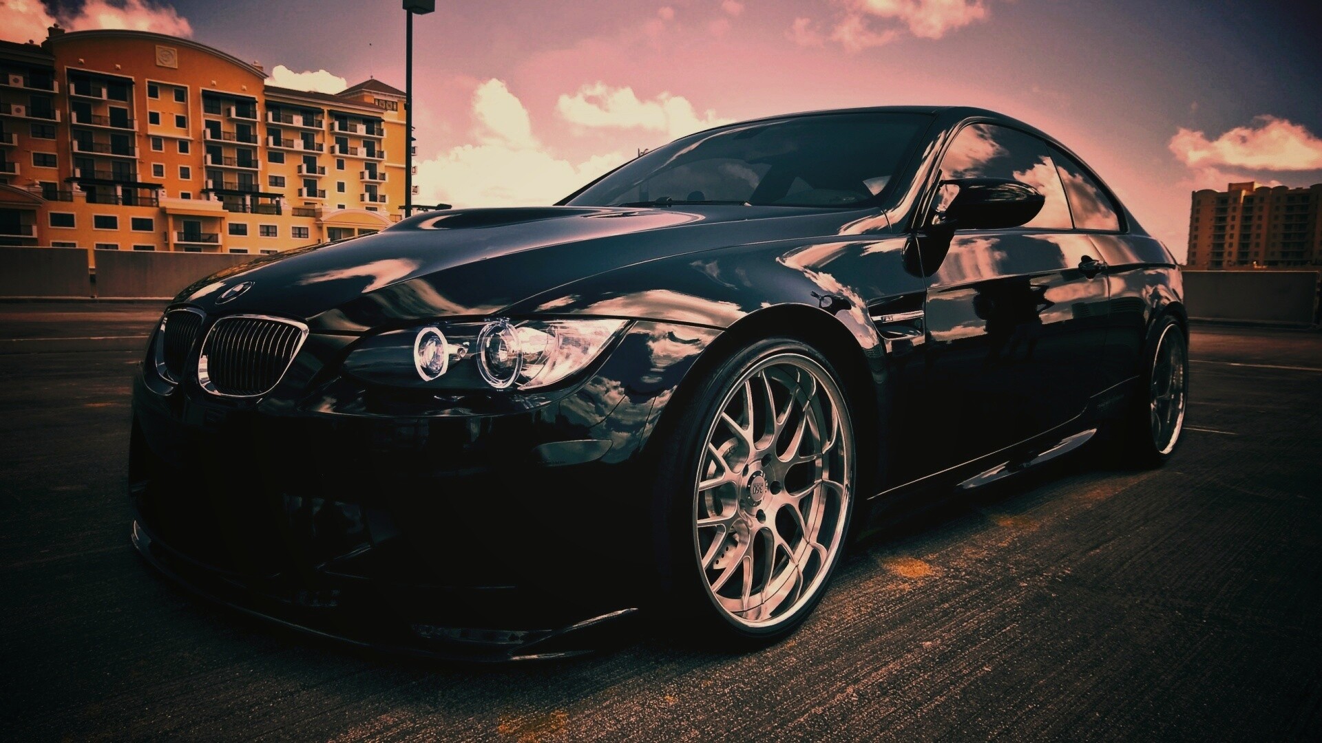 «Красивый черный BMW на парковке»