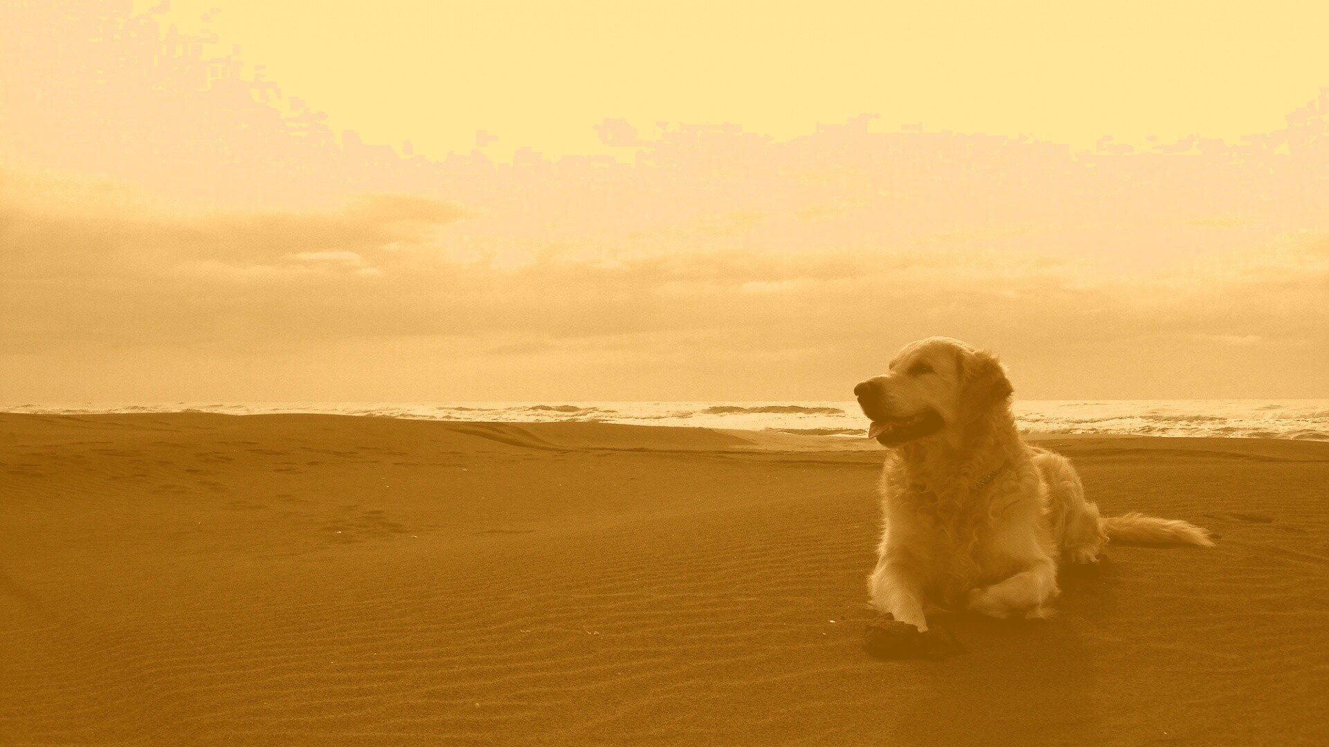 «Красивая собака на оранжевом песке»