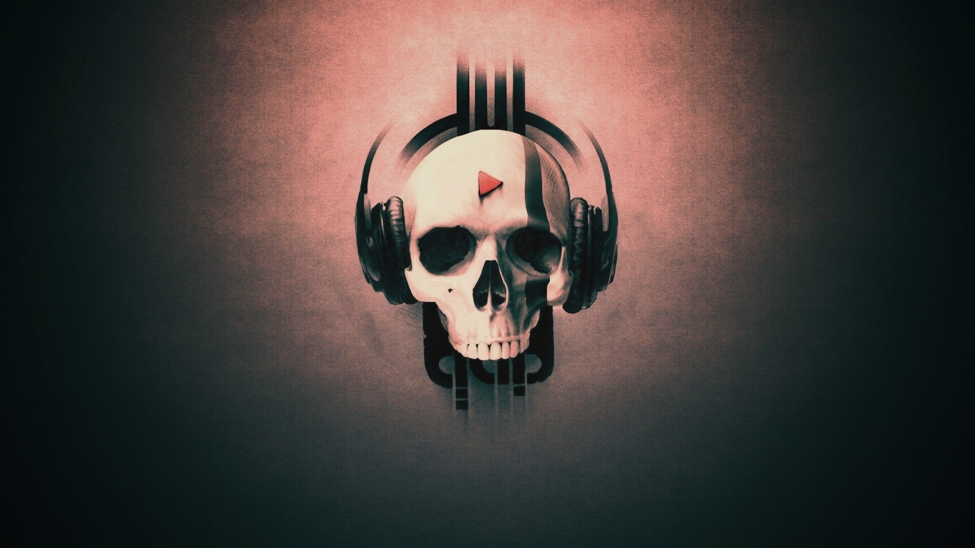 Обои для рабочего стола «Череп в наушниках» 1920х1080 с фильтром earlybird (оригинал 2560х1600)