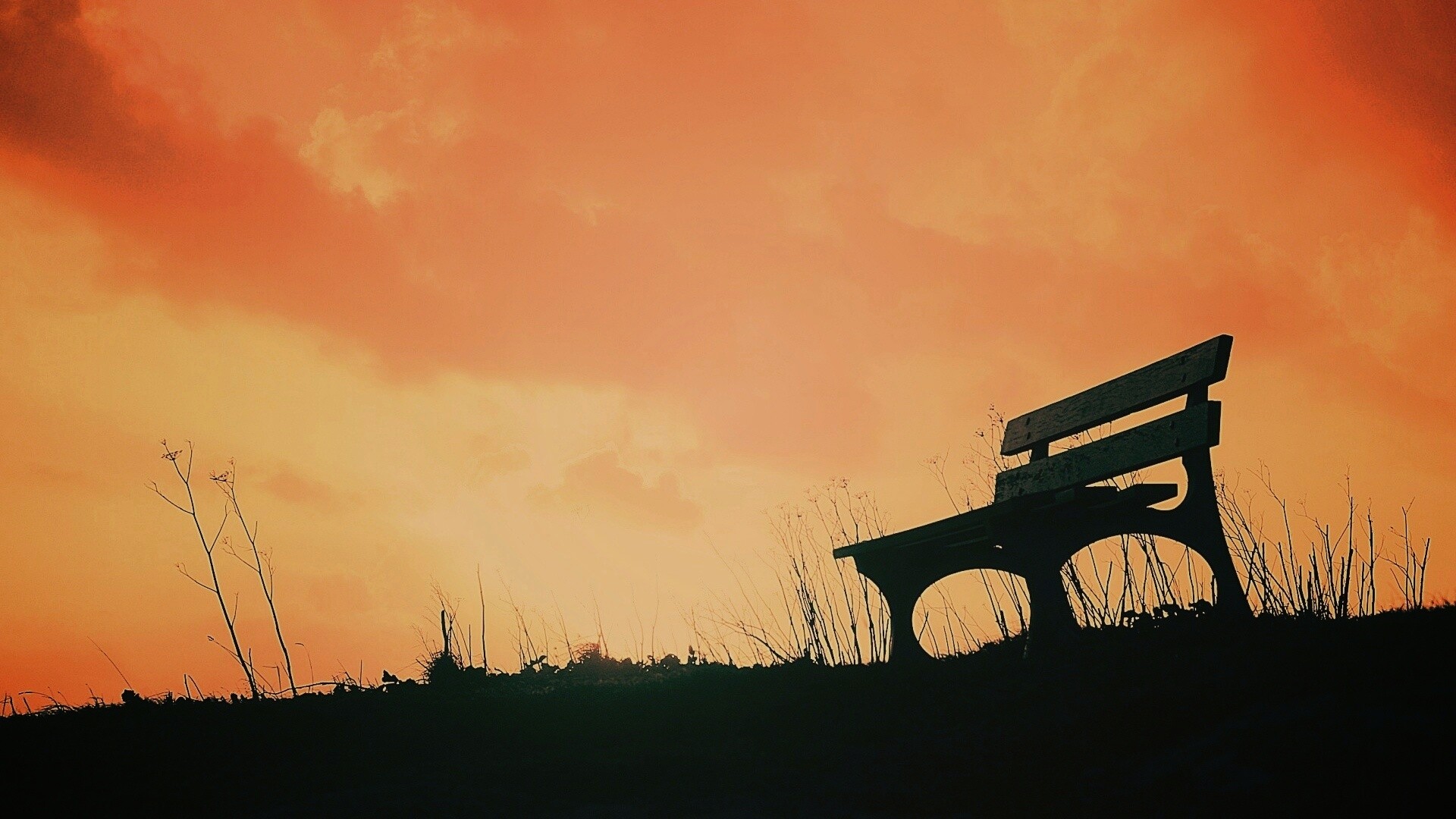 «Силуэт скамейки на фоне неба»
