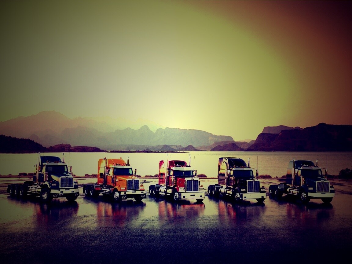 «Тягачи на фоне озера»
