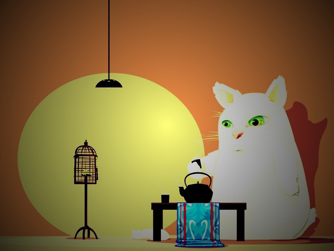 «Кот пьет чай»