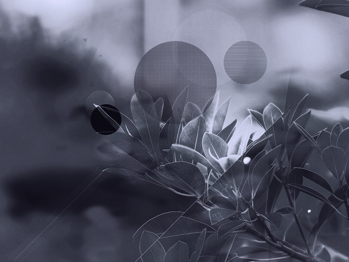 «Синий фильтр с кргуами на фото листьев»