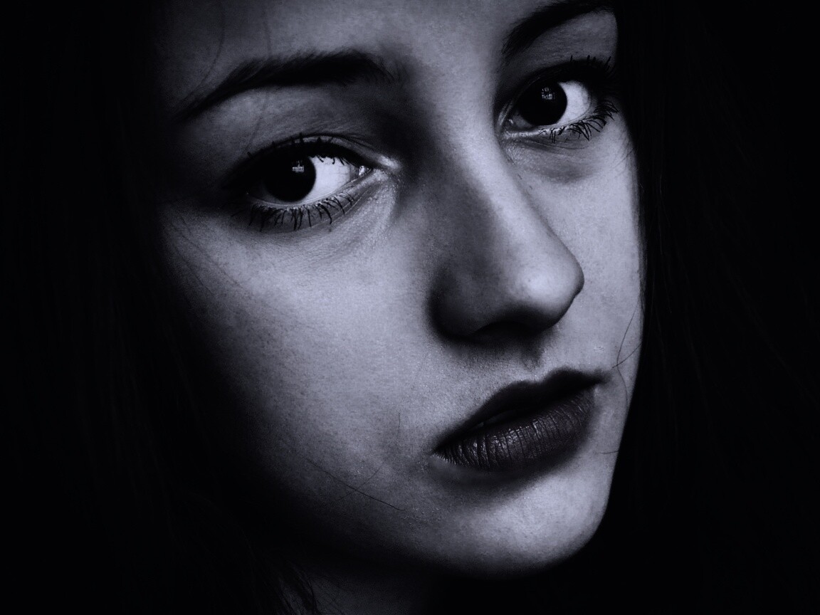 «Брюнетка с ярким макияжем и печальным лицом»