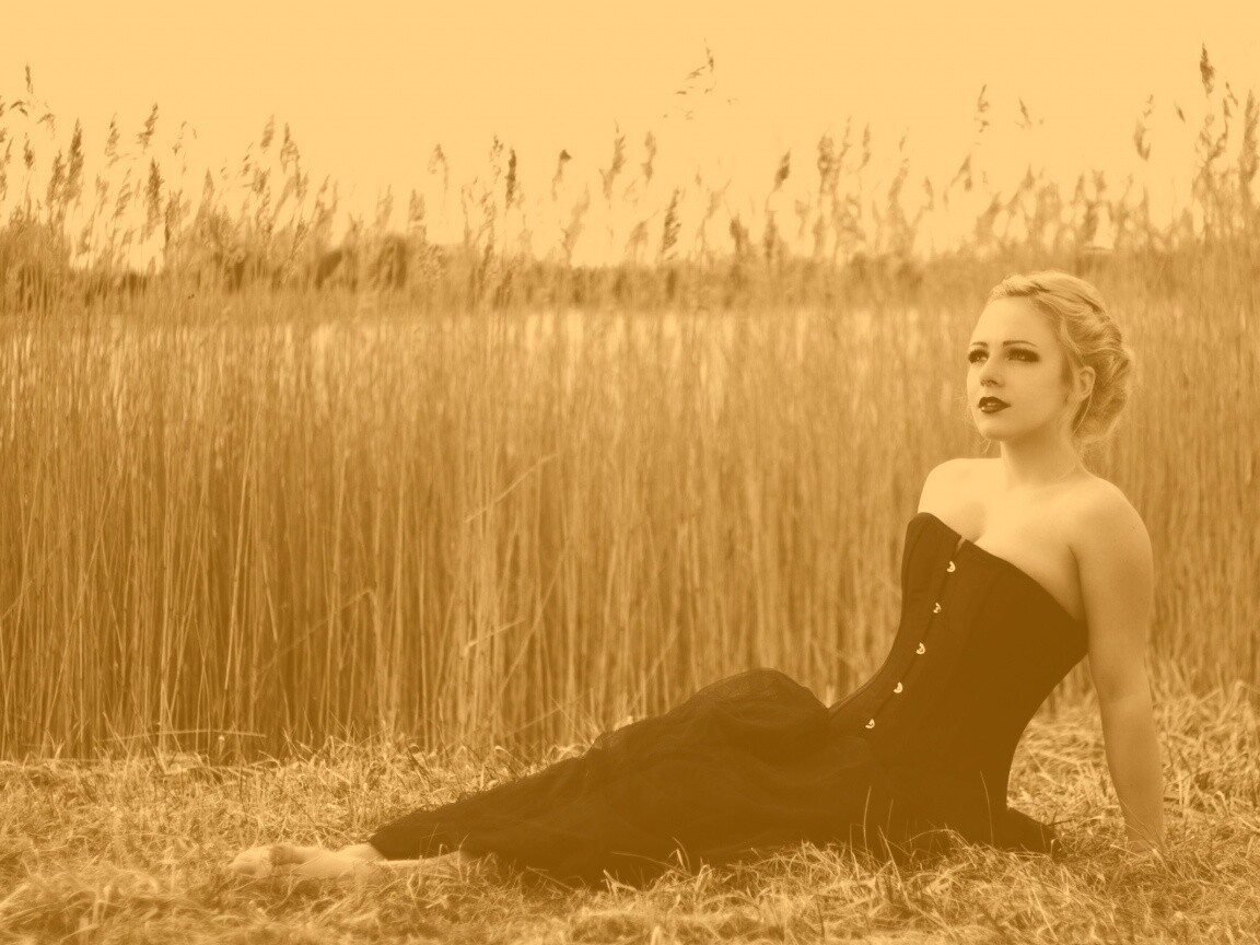 «Девушка на траве в черном корсете»