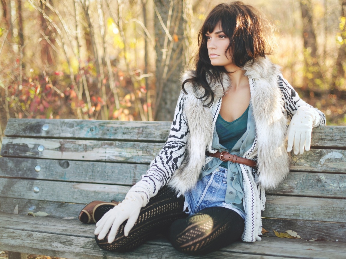 «Красивая девушка сидит на скамейке»