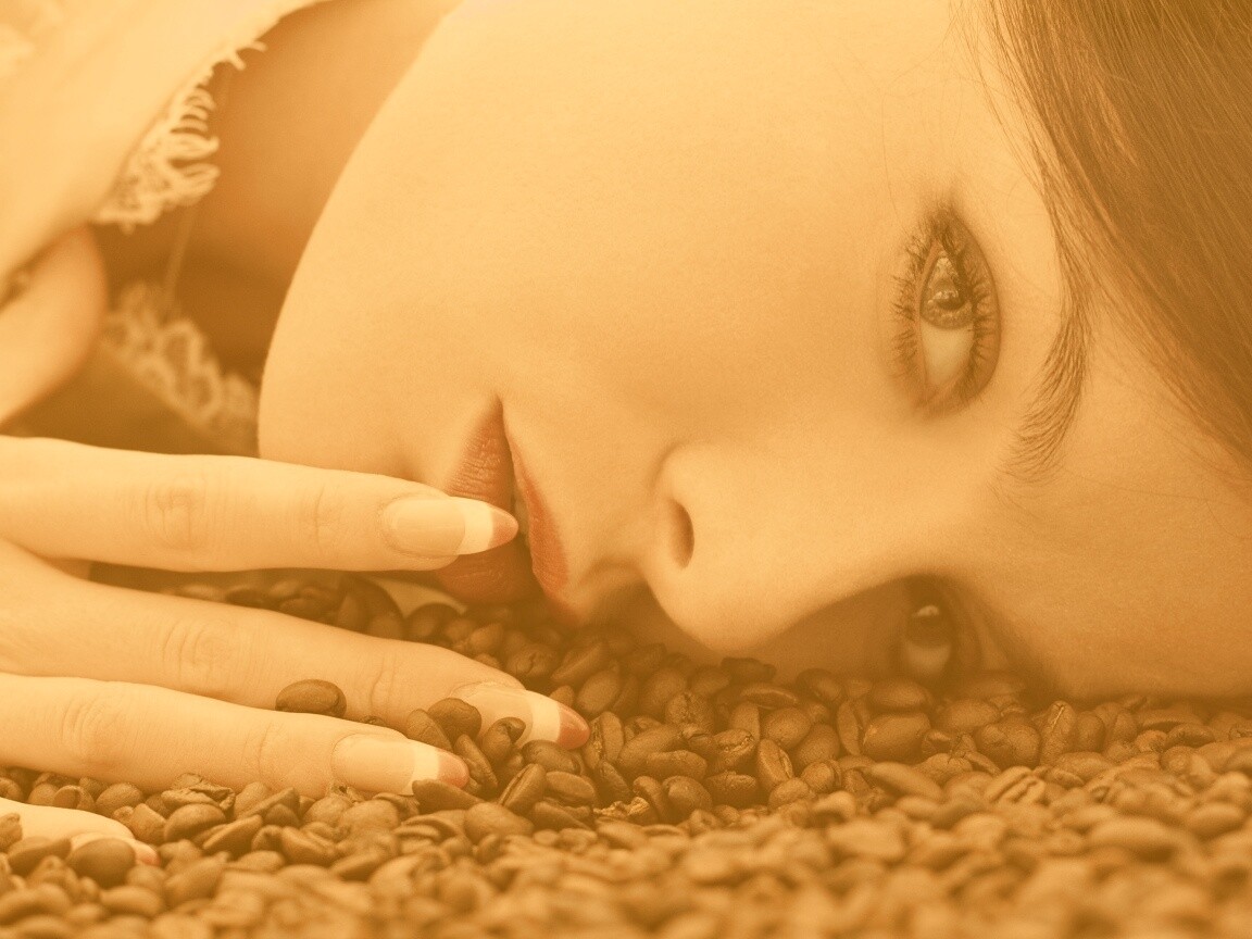 «Соблазнительная девушка с кофейными зернами»