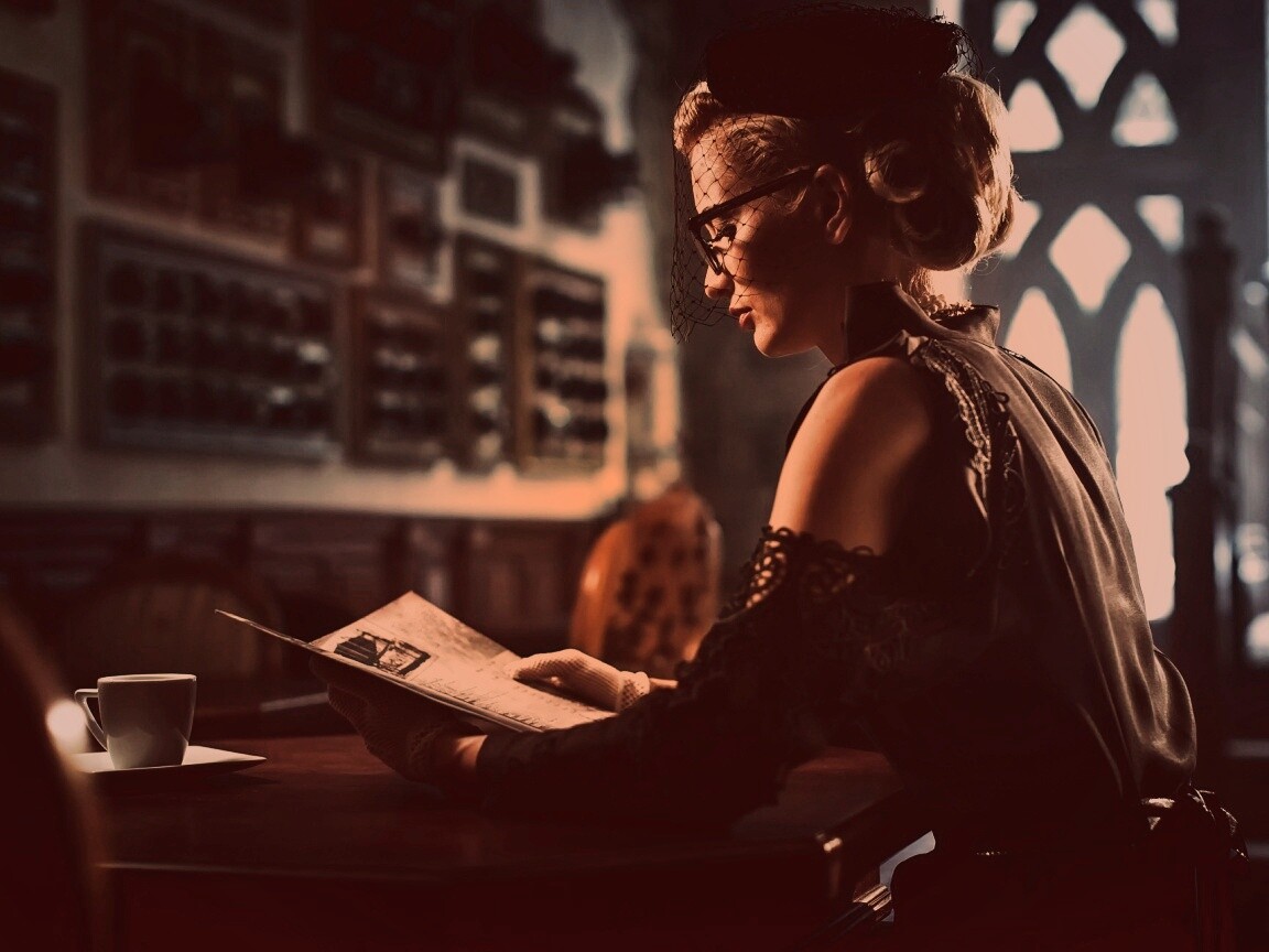 «Витажная девушка в кафе»