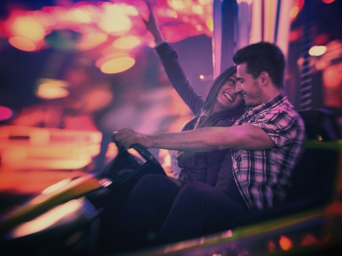 «Счастливая пара на аттракционах»