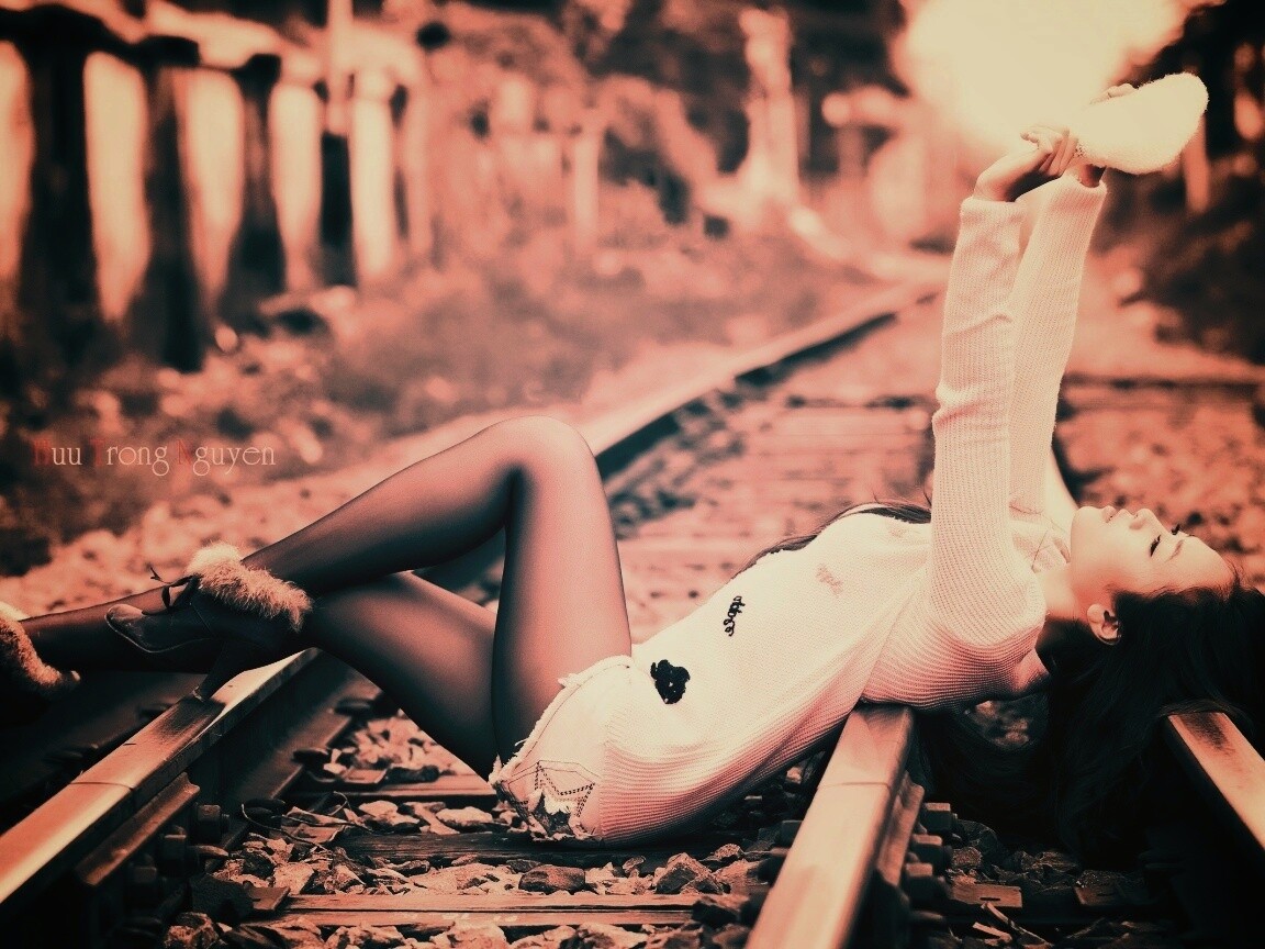 «Модель на железнодорожных путях»