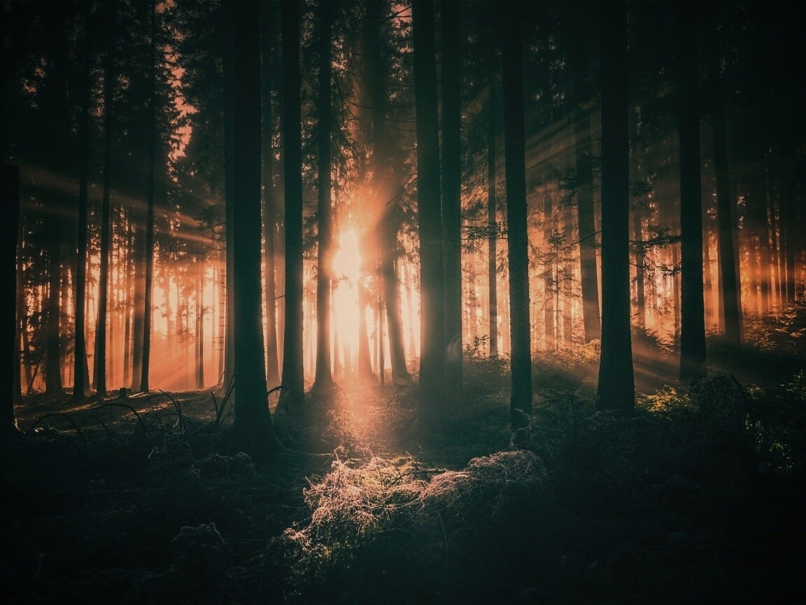 «Свет пробивается сквозь стволы деревьев»