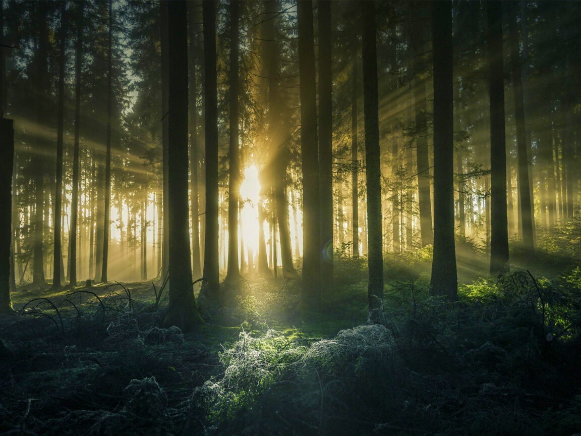 «Свет пробивается сквозь стволы деревьев»
