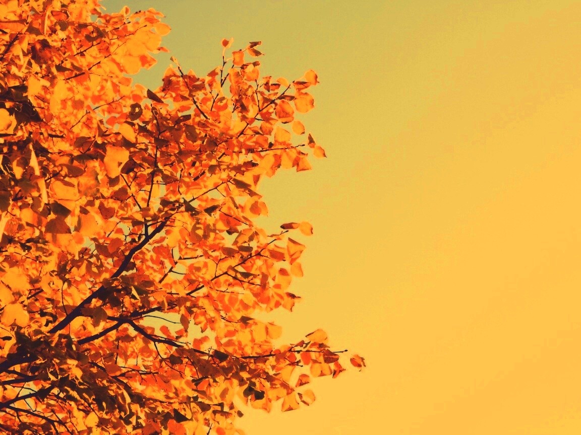 «Ветви с пожелтевшими листьями на фоне неба»