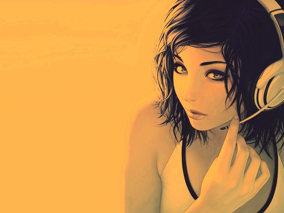 «Сексуальная девушка в наушниках с микрофоном»