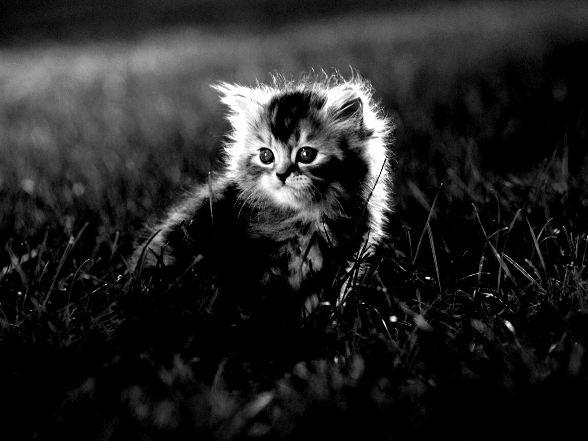 «Пушистый котенок в траве»