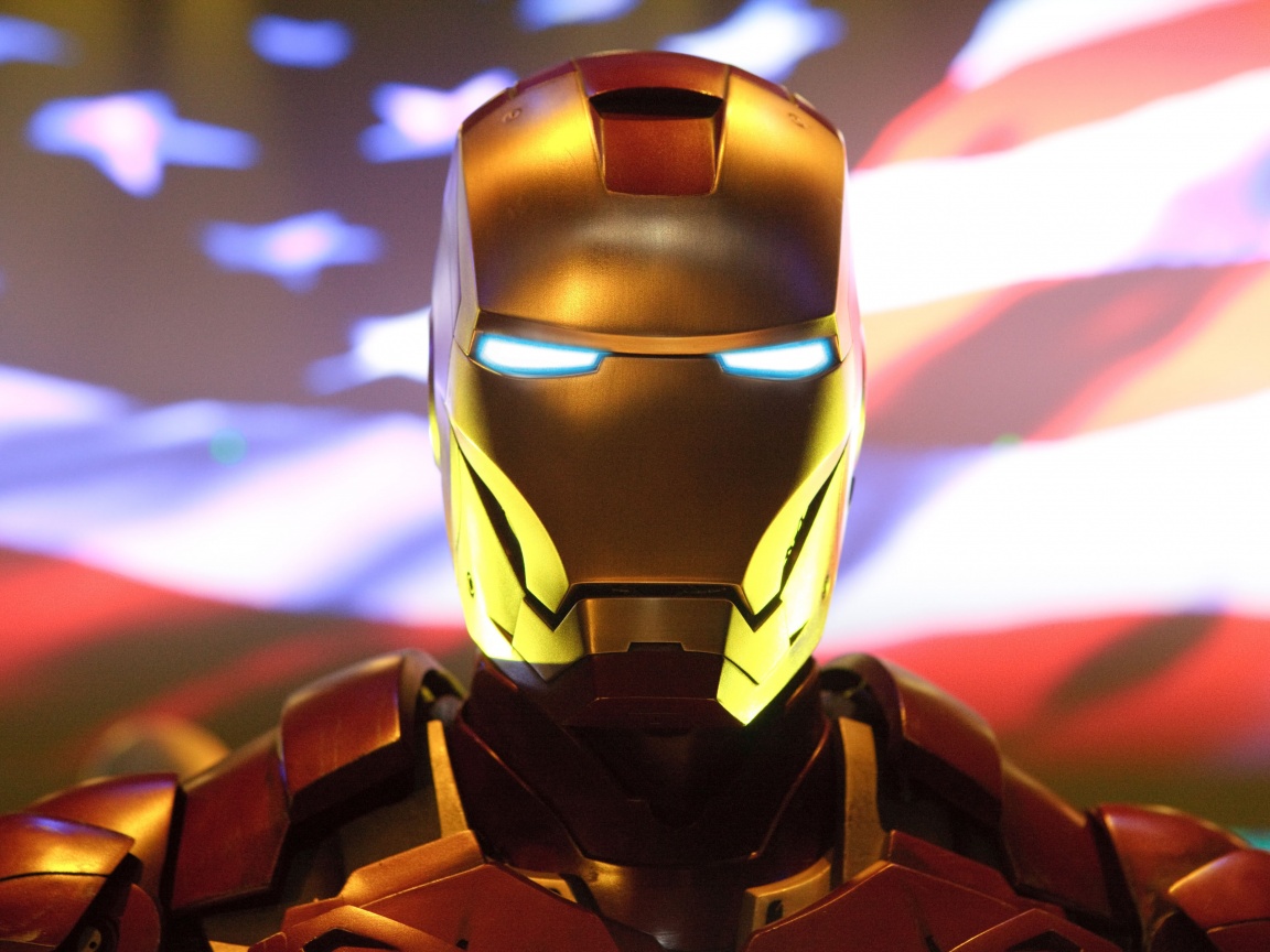 «Железный человек на фоне американского флага»