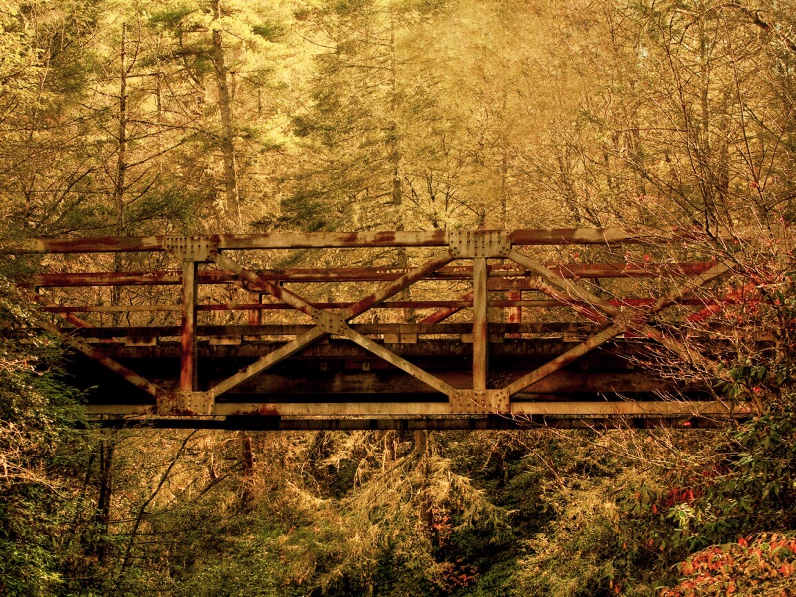 «Металлический мост в лесной глуши»