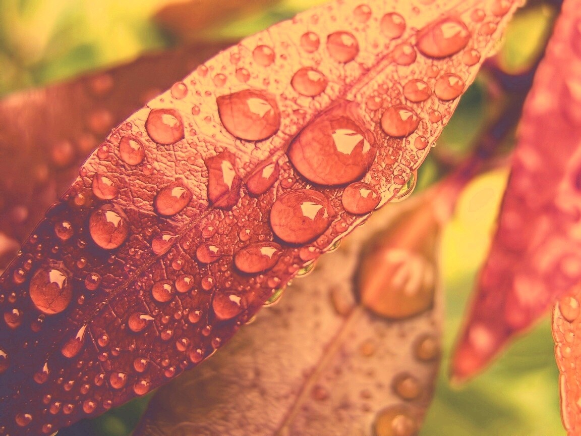 «Капли росы на красных листьях»