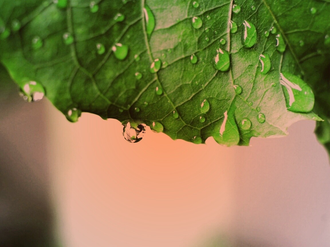 «Роса на листе в макро»