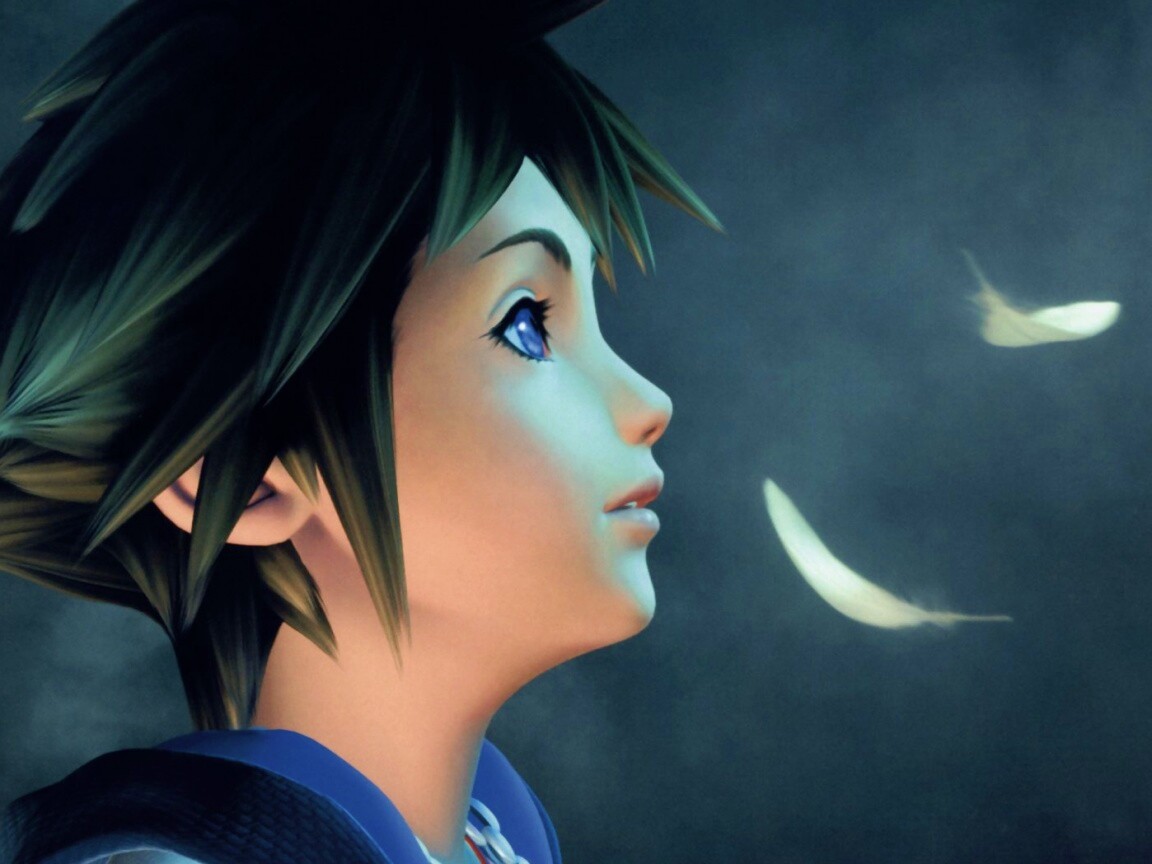 «Анимешный парень и белые перья»
