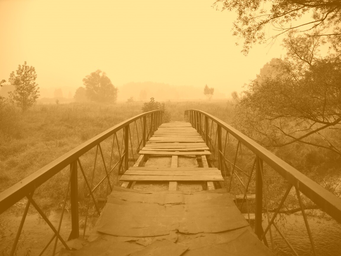 «Старый мост на черно-белом фото»