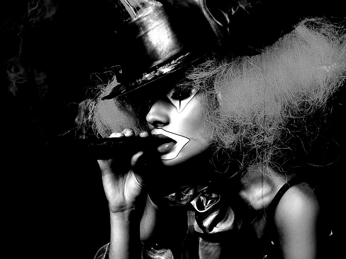 «Девушка клоун курит сигару»