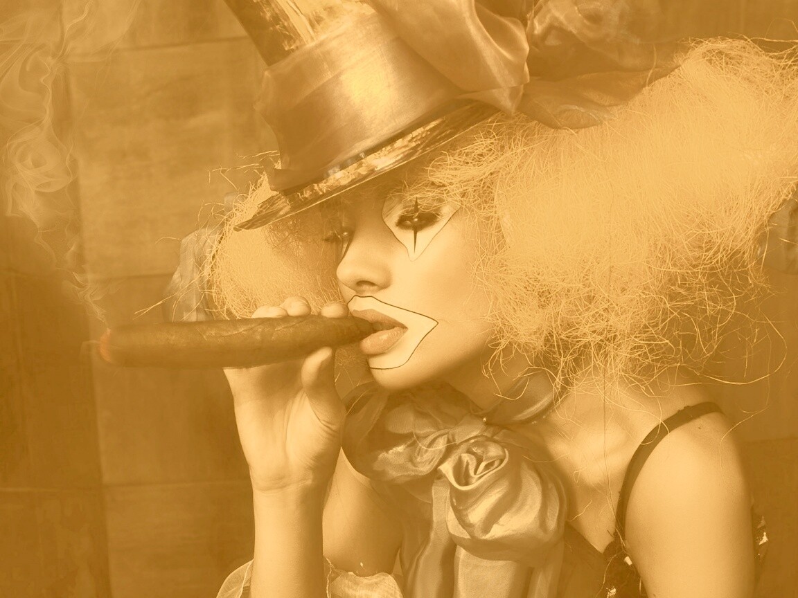 «Девушка клоун курит сигару»