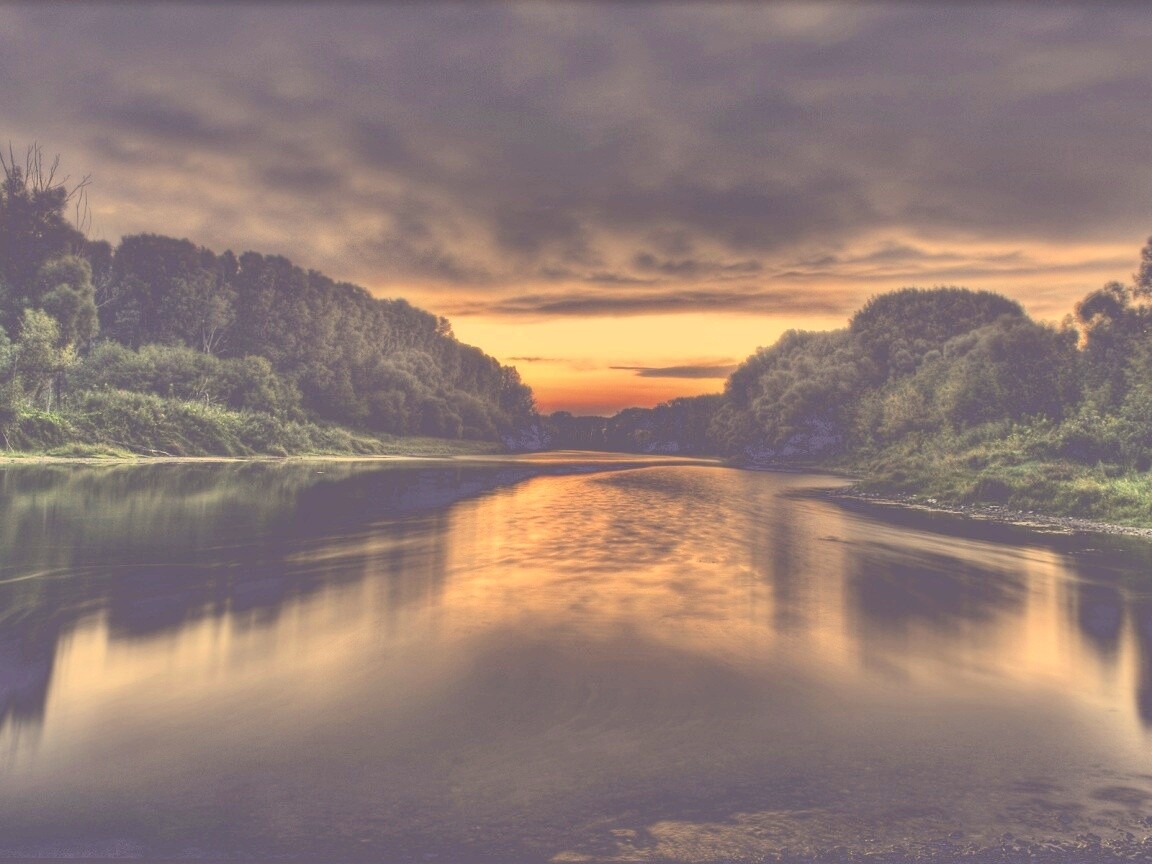 «Багровый закат и водная гладь»
