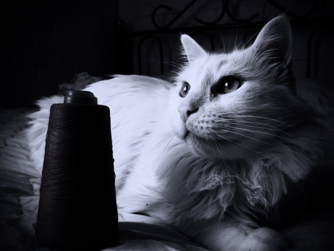 «Белый кот с катушкой ниток»