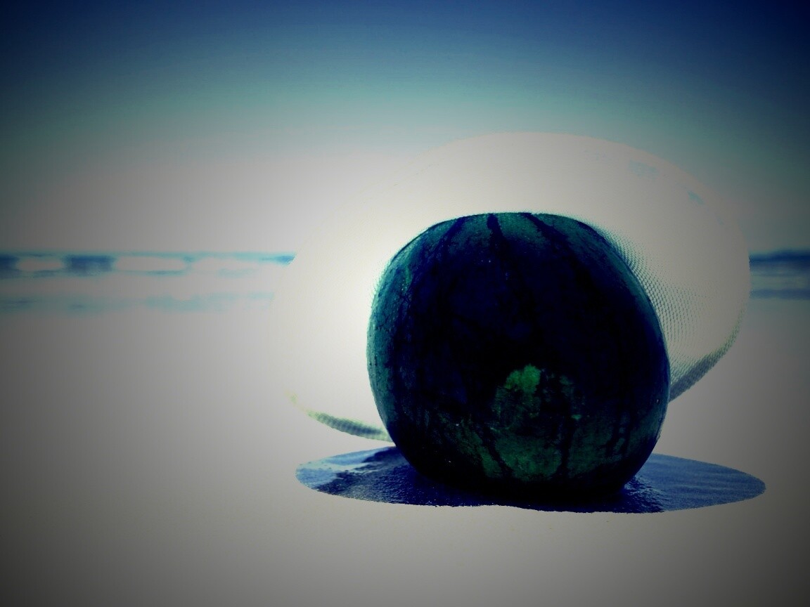 «Арбуз в летней шляпке на пляже»