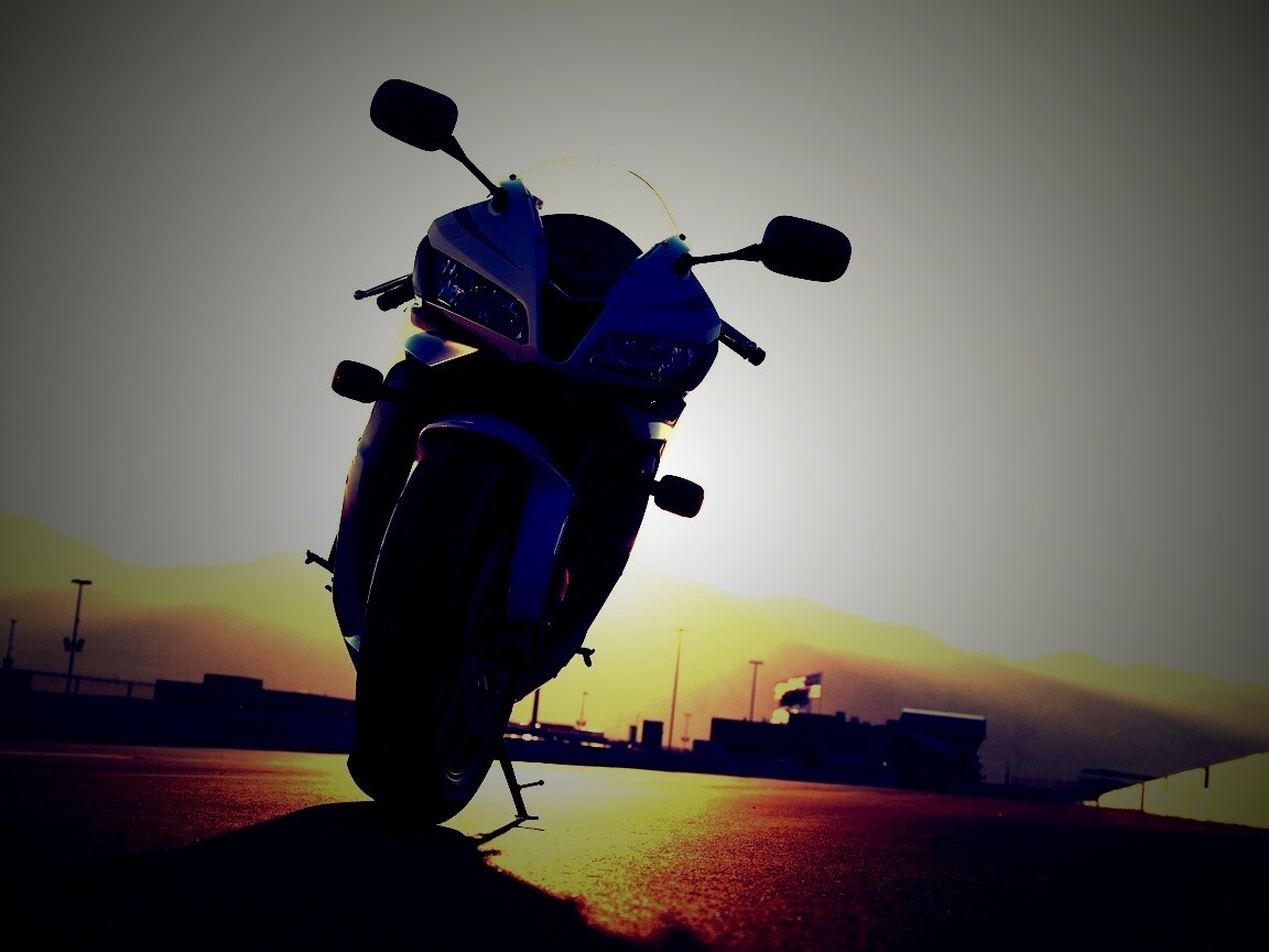 «Мотоцикл на фоне заходящего солнца»